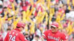 [OSEN=잠실, 민경훈 기자] 1일 오후 서울 잠실구장에서 '2018 신한은행 MY CAR KBO 리그' LG 트윈스와 KIA 타이거즈의 경기가 열렸다. 5회초 KIA 선두타자 최형우가 좌월 솔로홈런을 날린 후 덕아웃에서 동료들과 하이파이브를 하고 있다./