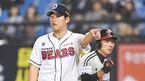 [OSEN=잠실,박준형 기자] 3일 오후 서울 잠실구장에서 열린 '2018 신한은행 MY CAR KBO리그' 두산 베어스와 LG 트윈스의 경기,연장 10회초 2사 1,2루 LG 가르시아의 타석 폭투된 공이 볼데드 선언되자 함덕주 투수가 공을 가르키고 있다. /