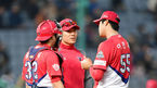 [OSEN=인천, 박재만 기자] 3일 오후 인천 SK행복드림구장에서 '2018 신한은행 MY CAR KBO리그' SK 와이번스와 KIA 타이거즈의 경기가 열렸다.1회말 KIA이대진 코치가 마운드를 찾아 이민우를 격려하고 있다. /pjmpp@osen.co.kr