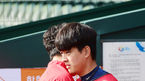 [OSEN=대전, 민경훈 기자] 3일 오후 대전 한화생명이글스파크에서 ‘2018 신한은행 MYCAR KBO리그’ 한화 이글스와 롯데 자이언츠의 경기가 열릴 예정인 가운데 양팀 훈련 시간에 롯데 김원중이 윤성빈과 포옹을 하고 있다./rumi