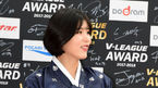 [OSEN=지형준 기자] 3일 오후 서울 홍은동 그랜드힐튼호텔에서 열린 2017-2018 도드람 V리그 시상식에서 기업은행 염혜선이 레드카펫을 밟으며 이밴트를 하고 있다. /jpnews@osen.co.kr