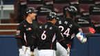 [OSEN=고척, 최규한 기자] 5일 오후 고척스카이돔에서 '2018 신한은행 MY CAR KBO리그' 넥센 히어로즈와 kt 위즈의 경기가 열렸다.1회초 1사 1루 상황 kt 로하스가 선제 우월 투런포를 날리고 황재균과 기뻐하고 있다. /dreamer@osen.co.kr