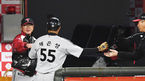 [OSEN=부산, 민경훈 기자] 6일 오후 부산 사직구장에서 ‘2018 신한은행 MYCAR KBO리그’ 롯데 자이언츠와 LG 트윈스의 경기가 열렸다.2회초 1사 1,3루 LG 강승호의 중견수 희생플라이때 홈을 밟은 오지환이 덕아웃에서 류중일 감