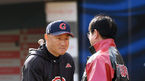 [OSEN=부산, 민경훈 기자] 6일 오후 부산 사직구장에서 ‘2018 신한은행 MYCAR KBO리그’ 롯데 자이언츠와 LG 트윈스의 경기가 열릴 예정인 가운데 양 팀 훈련시간에 롯데 조원우 감독과 LG 류중일 감독이 악수를 나눈 후 즐겁게