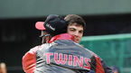 [OSEN=부산, 민경훈 기자] 7일 오후 부산 사직구장에서 ‘2018 신한은행 MYCAR KBO리그’ 롯데 자이언츠와 LG 트윈스의 경기가 열릴 예정인 가운데 양 팀 훈련시간에 롯데 레일리와 LG 소사가 포옹을 하고 있다. /rumi@osen.co.kr