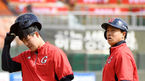 [OSEN=부산, 민경훈 기자] 7일 오후 부산 사직구장에서 ‘2018 신한은행 MYCAR KBO리그’ 롯데 자이언츠와 LG 트윈스의 경기가 열릴 예정인 가운데 양 팀 훈련시간에 롯데 민병헌과 손아섭이 타격연습을 하며 얼굴을 찡그리고 있