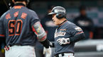 [OSEN=수원, 박재만 기자] 8일 오후 경기도 수원kt위즈파크에서 '2018 신한은행 MY CAR KBO리그' kt위즈와 한화 이글스의 경기가 열렸다.7회초 2사 만루 한화 정근우가 kt 이상화의 폭투때 홈을 밟으며 동점 득점을 한 뒤 동료들과 환호