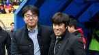 [OSEN=수원, 최규한 기자] 8일 오후 경기도 수원월드컵경기장에서 ' 2018 KEB 하나은행 K리그1' 수원 삼성과 FC서울의 '슈퍼매치' 경기가 열렸다.수원 서정원 감독과 FC서울 황선홍 감독이 경기 시작을 앞두고 인사를 나누고 있다. /drea