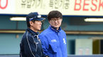 [OSEN=대구, 지형준 기자] 11일 오후 대구 삼성라이온즈파크에서 열린 '2018 신한은행 MYCAR KBO리그' 삼성 라이온즈와 두산 베어스의 경기. 경기에 앞서 두산 이강철 감독이 삼성 한기주와 이야기를 나누고 있다. /jpnews@osen.co.kr