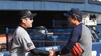 [OSEN=잠실,박준형 기자] 17일 오후 서울 잠실구장에서 열리는 2018 신한은행 MY CAR KBO 리그’ 두산 베어스와 한화 이글스의 경기에 앞서 한화 한용덕 감독이 김재호와 인사를 나누고 있다./ soul1014@osen.co.kr