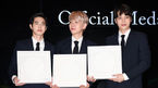 [OSEN=이동해 기자] 18일 오전 서울 삼성동 코엑스 SM아티움에서 열린 '엑소(EXO) 공식 기념메달' 공개 행사에 참석한 그룹 수호, 백현, 카이가 기념메달을 오픈하고 있다. / eastsea@osen.co.kr