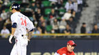 [OSEN=대전,박준형 기자]20일 대전 부사동 한화생명이글스파크에서 열린 '2018 신한은행 MYCAR' KBO리그 한화 이글스와 넥센 히어로즈의 경기,4회말 한화 선두타자 김태균의 안타때 불규칙 바운드된 공에 맞은 넥센 김혜성 2루수가 고