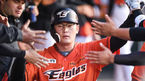 [OSEN=대전,박준형 기자]20일 대전 부사동 한화생명이글스파크에서 열린 '2018 신한은행 MYCAR' KBO리그 한화 이글스와 넥센 히어로즈의 경기,2회말 1사 2루 한화 하주석의 선취 1타점 2루타때 홈을 밟은 2루 주자 이성열이 동료들의 축