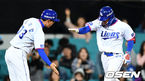 [OSEN=잠실, 박재만 기자] 24일 오후 서울 잠실야구장에서 ‘2018 신한은행 MY CAR KBO리그’ LG 트윈스와 넥센 히어로즈의 경기가 열렸다.7회말 2사 1루 LG 유강남이 중월 투런 홈런을 날린 뒤 유지현 코치와 하이파이브를 하고