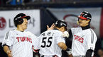 [OSEN=잠실, 박재만 기자] 24일 오후 서울 잠실야구장에서 ‘2018 신한은행 MY CAR KBO리그’ LG 트윈스와 넥센 히어로즈의 경기가 열렸다.7회말 1사 1,2루 LG 채은성이 좌중간 스리런 홈런을 날린 뒤 김현수와 박용택에게 축하를