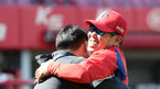[OSEN=광주, 이대선 기자] 25일 오후 광주-KIA챔피언스필드에서 열릴 ‘2018 신한은행 MY CAR KBO리그’ KIA와 한화의 경기에 앞서 KIA 김기태 감독이 더그아웃으로 가며 버나디나와 하이파이브를 하고 있다./sunday@osen.co.kr