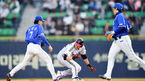 [OSEN=잠실, 이동해 기자] 27일 오후 서울 잠실야구장에서 열린 '2018 신한은행 MYCAR KBO리그' LG 트윈스와 삼성 라이온즈의 경기, 1회말 1사 1루 LG 박용택 타석 때 삼성 아델만의 견제에 걸린 1루 주자 이형종이 김상수에게 태그아웃 되