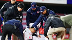 [OSEN=부산, 민경훈 기자] 3일 오후 부산 사직구장에서 열린 '2018 신한은행 MYCAR KBO리그' 롯데 자이언츠와 KIA 타이거즈의 경기, 9회초 2사 주자 1루 KIA 이명기의 타구에 맞은 롯데 손승락이 수비를 한 후 고통을 호소하며 교체되고 있