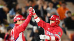 [OSEN=부산, 민경훈 기자] 3일 오후 부산 사직구장에서 열린 '2018 신한은행 MYCAR KBO리그' 롯데 자이언츠와 KIA 타이거즈의 경기, 5회초 1사 주자 1,2루 KIA 김선빈이 좌중월 역전 스리런 홈런을 날린 후 덕아웃에서 동료들과 하이파이브
