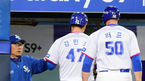 [OSEN=대구, 민경훈 기자] 4일 오후 대구 삼성 라이온즈 파크에서 열린 ‘2018 신한은행 MYCAR KBO리그’ 삼성 라이온즈와 한화 이글스의 경기, 3회말 2사 주자 1루 삼성 강민호의 홈런성 타구가 2루타 처리되자 삼성 김한수 감독