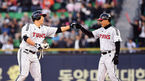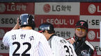 [OSEN=잠실, 곽영래 기자] 4일 오후 서울 잠실야구장에서 '2018 신한은행 MYCAR KBO리그' LG 트윈스와 두산 베어스의 경기가 열렸다.1회말 1사 2,3루 LG 박용택, 김현수가 채은성의2타점 적시타로 득점을 올리고 있다. / youngrae@osen.co.kr