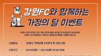 [OSEN=이인환 기자]강원 FC가 가정의 달5월을 맞아 특별 이벤트를 진행한다.강원은오는10일 오후1시까지SNS를 통해 강원과가족의 추억이 깃든 사연을 접수 받는다.채택된 사연을 보내준 가족들에게는‘후원의 집’상품권이