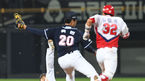 [OSEN=광주, 최규한 기자] 9일 오후 광주-기아 챔피언스 필드에서 '2018 신한은행 MYCAR KBO리그' KIA 타이거즈와 두산 베어스의 경기가 열렸다.6회말 무사 선두타자로 나선 KIA 김민식의 내야 땅볼 때 두산 1루수 오재일이 타구를 잡은