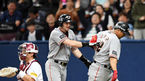 [OSEN=고척, 지형준 기자] 9일 오후 서울 고척스카이돔에서 열린 '2018 신한은행 MYCAR KBO리그' 넥센 히어로즈와 한화 이글스의 경기, 8회초 1사 2루에서 한화 김태균이 투런포를 날리고 호잉의 축하를 받고 있다. /jpnews@osen.co.kr