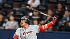 [OSEN=고척, 지형준 기자] 9일 오후 서울 고척스카이돔에서 열린 '2018 신한은행 MYCAR KBO리그' 넥센 히어로즈와 한화 이글스의 경기, 6회초 2사 1루에서 한화 김태균이 좌중간 안타를 날리고 있다. /jpnews@osen.co.kr
