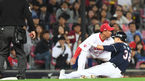 [OSEN=수원, 이동해 기자] 9일 오후 경기도 수원kt위즈파크에서 열린 '2018 신한은행 MYCAR KBO리그' kt 위즈와 삼성 라이온즈의 경기, 4회초 무사 1루 삼성 손주인이 희생번트를 성공 시키고 있다. / eastsea@osen.co.kr