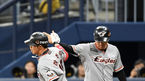 [OSEN=고척, 지형준 기자] 9일 오후 서울 고척스카이돔에서 열린 '2018 신한은행 MYCAR KBO리그' 넥센 히어로즈와 한화 이글스의 경기, 2회초 1사 1루에서 한화 하주석이 선제 투런포를 날리고 고동진 코치와 하이파이브를 하고 있다. /j