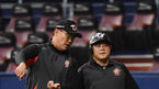 [OSEN=고척, 곽영래 기자] 10일 오후 서울 고척스카이돔에서 열리는 '2018 신한은행 MYCAR KBO리그' 넥센 히어로즈와 한화 이글스의 경기에 앞서 한화 장종훈 코치가 양성우와 이야기를 나누고 있다. / youngrae@osen.co.kr