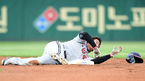 [OSEN=인천, 민경훈 기자] 11일 오후 서울 인천 SK행복드림구장에서 '2018 신한은행 MY CAR KBO 리그' SK 와이번스와 LG 트윈스의 경기, 1회초 1사 주자 2,3루 LG 채은성의 유격수 라인드라이브 타구때 2루에서 아웃당한 2루 주자 LG 박용택