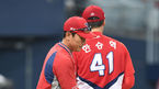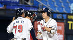 [OSEN=잠실, 지형준 기자] 16일 오후 서울 잠실야구장에서 열린 '2018 신한은행 MYCAR KBO리그' 두산 베어스와 SK 와이번스의 경기, 2회말 1사에서 두산 김재호가 좌월 솔로포를 날리고 김태균 코치와 하이파이브를 하고 있다. /jpnews@osen.