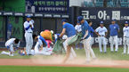 [OSEN=대구, 손찬익 기자] 강백호(KT)가 왼손 엄지통증으로 1회 교체됐다.강백호는 30일 대구삼성라이온즈파크에서 열린 삼성과의 원정 경기에 1번 좌익수로 선발 출장했다.1회 삼성 선발 리살베르토 보니야와 대결에서 타격 도중