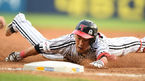 [OSEN=잠실, 지형준 기자] 5일 오후 서울 잠실야구장에서 열린 '2018 신한은행 MYCAR KBO리그' LG 트윈스와 한화 이글스의 경기, 2회말 1사에서 LG 정주현이 우중간 3루타를 날리고 한화 송광민에 앞서 세이프되고 있다. /jpnews@osen.co.kr