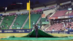 [OSEN=잠실, 이동해 기자] 14일 오후 서울 잠실야구장에서 열린 '2018 신한은행 MYCAR KBO리그' 두산 베어스와 kt 위즈의 경기, 5회말 갑작스런 비에 그라운드에 방수포를 덮고 경기가 잠시 중단됐지만 사그라드는 비에 구단 관리 요원