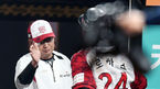 [OSEN=수원, 이동해 기자] 19일 오후 경기도 수원kt위즈파크에서 열린 '2018 신한은행 MYCAR KBO리그' kt 위즈와 롯데 자이언츠의 경기, 7회말 2사 2루 kt 윤석민의 1타점 적시타에 동점 득점 성공한 2루주자 로하스가 김진욱 감독과 하이