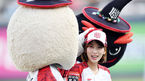 [OSEN=수원, 이동해 기자] 20일 오후 경기도 수원kt위즈파크에서 열린 '2018 신한은행 MYCAR KBO리그' kt 위즈와 롯데 자이언츠의 경기, 가수 지숙이 시구 후 kt 마스코트에게 칭찬을 받고 있다. / eastsea@osen.co.kr