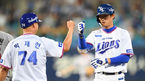 [OSEN=대구, 박준형 기자] 20일 오후 대구 삼성라이온즈파크에서 열린 '2018 신한은행 MY CAR KBO리그' 삼성 라이온즈와 SK 와이번스의 경기,8회말 1사 2루 삼성 구자욱이 동점 1타점 적시타를 날리고 박재현 1루 코치와 하이파이브를 하