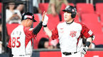 [OSEN=청주, 박준형 기자] 21일 충북 청주시 청주구장에서 열린 '2018 신한은행 MY CAR KBO리그' 한화 이글스와 LG 트윈스의 경기,8회말 2사 1루 대타 이성열이 동점 2점 홈런을 날리고 1루 주자 호잉과 하이파이브를 하고 있다. / soul1014@os