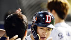 [OSEN=잠실, 민경훈 기자] 21일 오후 서울 잠실구장에서 열린 '2018 신한은행 MY CAR KBO 리그' 두산 베어스와 넥센 히어로즈의 경기, 7회말 1사 주자 1루 두산 김재환이 좌월 투런 홈런을 날린 후 홈을 밟고 있다./ rumi@osen.co.kr