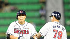 [OSEN=잠실, 민경훈 기자] 21일 오후 서울 잠실구장에서 열린 '2018 신한은행 MY CAR KBO 리그' 두산 베어스와 넥센 히어로즈의 경기, 7회말 2사 주자 1,3루 두산 류지혁이 우익수 오른쪽 1타점 2루타를 날린 후 2루에서 김태균 코치와 하