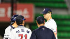 [OSEN=잠실, 민경훈 기자] 21일 오후 서울 잠실구장에서 열린 '2018 신한은행 MY CAR KBO 리그' 두산 베어스와 넥센 히어로즈의 경기, 6회초 2사 주자 1,2루 넥센 고종욱 타석에서 두산 이강철 코치가 마운드로 올라와 선발 후랭코프와