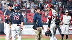 [OSEN=수원, 이동해 기자] 21일 오후 경기도 수원kt위즈파크에서 열린 '2018 신한은행 MYCAR KBO리그' kt 위즈와 롯데 자이언츠의 경기, 연장 10회초 양팀 선수들이 마운드에 모여 이종혀의 상태를 살피고 있다. 상황은 무사 2루 롯데 이