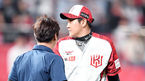 [OSEN=수원, 이동해 기자] 21일 오후 경기도 수원kt위즈파크에서 열린 '2018 신한은행 MYCAR KBO리그' kt 위즈와 롯데 자이언츠의 경기, 연장 이종혁이 이대호의 사과에 괜찮다는 표정을 짓고 있다. 상황은 무사 2루 롯데 이대호의스윙