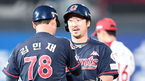 [OSEN=수원, 이동해 기자] 21일 오후 경기도 수원kt위즈파크에서 열린 '2018 신한은행 MYCAR KBO리그' kt 위즈와 롯데 자이언츠의 경기, 연장 10회초 무사 2루 롯데 이병규가 1타점 적시 2루타를 뽑아낸 후 김민재 코치와 미소 짓고 있다.