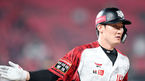 [OSEN=수원, 이동해 기자] 21일 오후 경기도 수원kt위즈파크에서 열린 '2018 신한은행 MYCAR KBO리그' kt 위즈와 롯데 자이언츠의 경기, 연장 10회초 1사 만루 롯데 김동한이 1타점 적시타를 뽑아낸 후 타구를 바라보고 있다. / eastsea@osen.c
