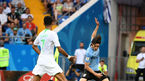 [OSEN=로스토프나도누(러시아), 지형준 기자] 2018 러시아월드컵 조별예선 A조 우루과이와 사우디아라비아의 경기가 20일 오후(현지시간) 러시아 로스토프나도누 아레나에서 열렸다. 전반 우루과이 로드리게스가 볼을 살리기 위해