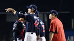 [OSEN=고척, 곽영래 기자] 22일 오후 서울 고척스카이돔에서 '2018 신한은행 MYCAR KBO리그' 넥센 히어로즈와 KIA 타이거즈의 경기가 열렸다.9회초 무사 1,3루 KIA 정성훈이 이명기의 파울에 맞은 뒤 천장을 바라보고 있다. / youngrae@osen.co.k